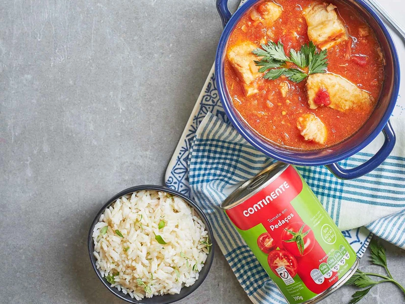 Junte o tomate em cubos e baixe o lume para brando.