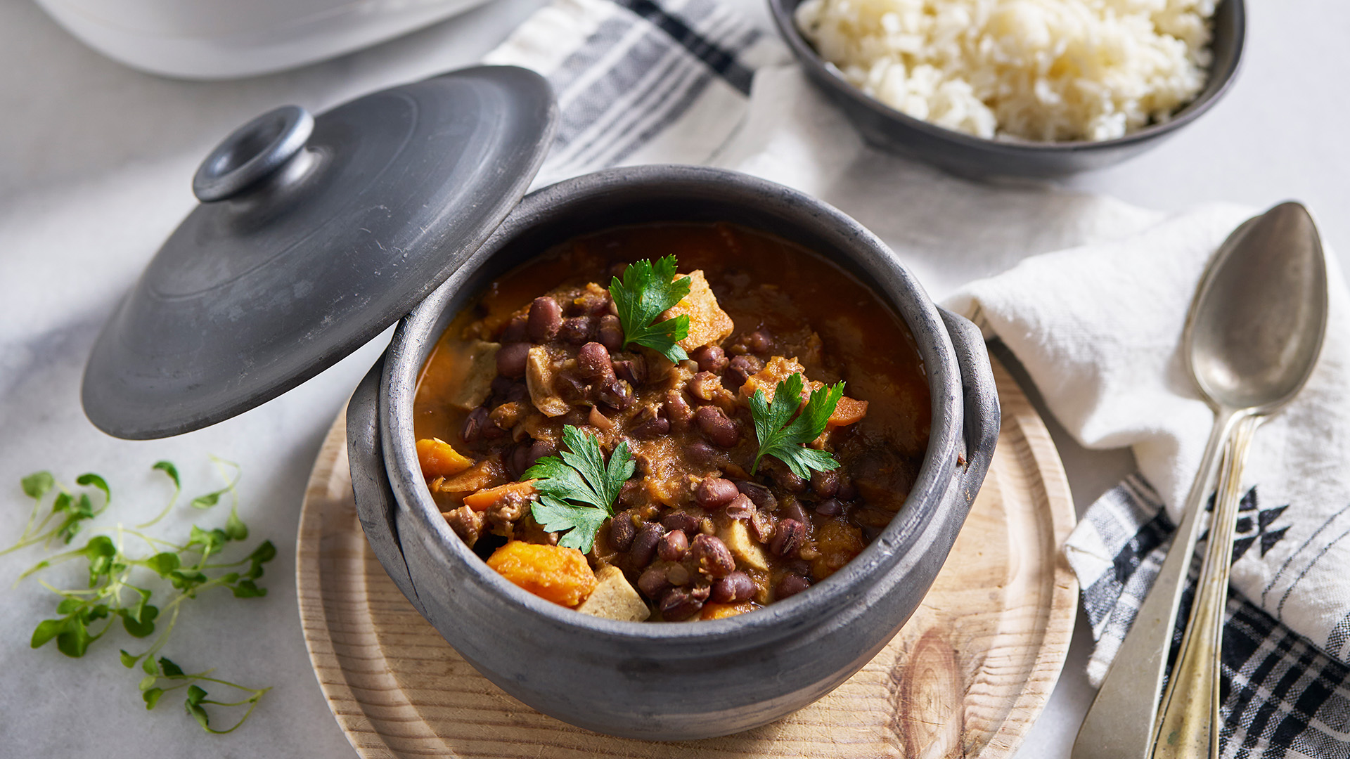 Sirva o estufado de legumes e castanhas e decore com orégãos frescos.