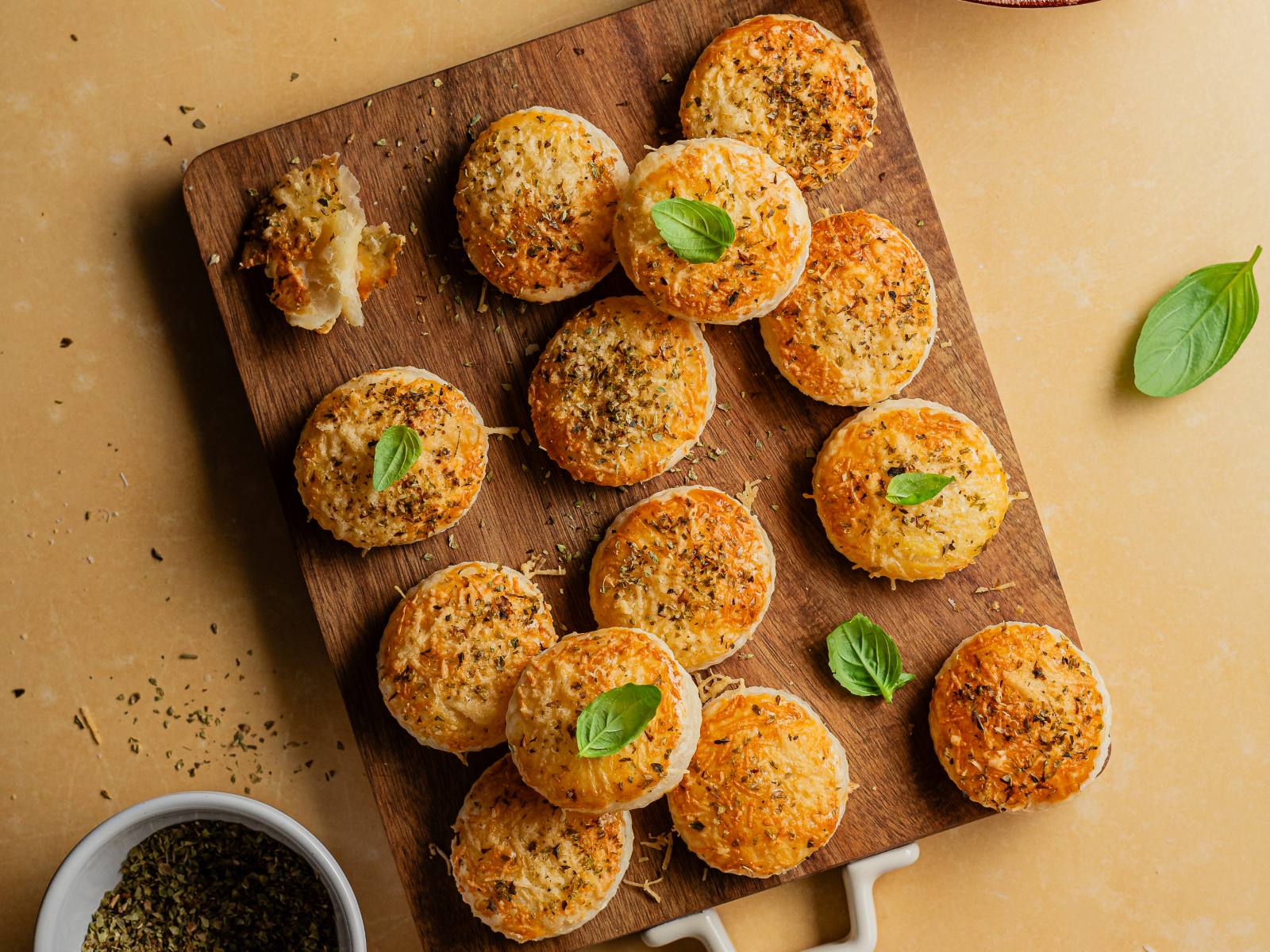 Pincele as estrelas com o ovo batido com um pouco de água, polvilhe-as com o queijo e orégãos e leve ao forno pré-aquecido a 180 ºC cerca de 10 minutos.