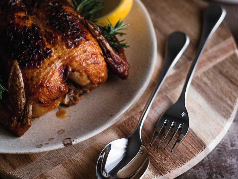 Sirva o frango assado com limão juntamente com as batatas assadas no forno. Decore com rodelas de limão e mais alecrim.
