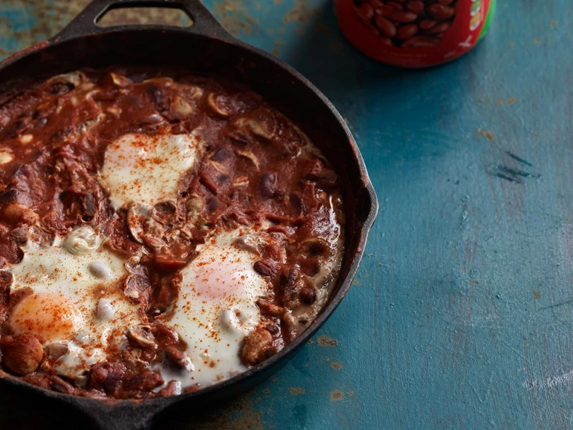 • Adicione o feijão encarnado e a polpa de tomate,tempere com sal e pimenta-preta e cozinhe por mais 5 minutos.
