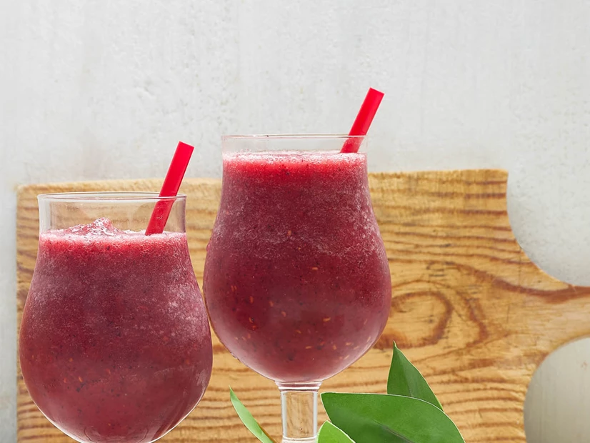 • Num copo de sumos, insira os frutos vermelhos, a melancia e a água.