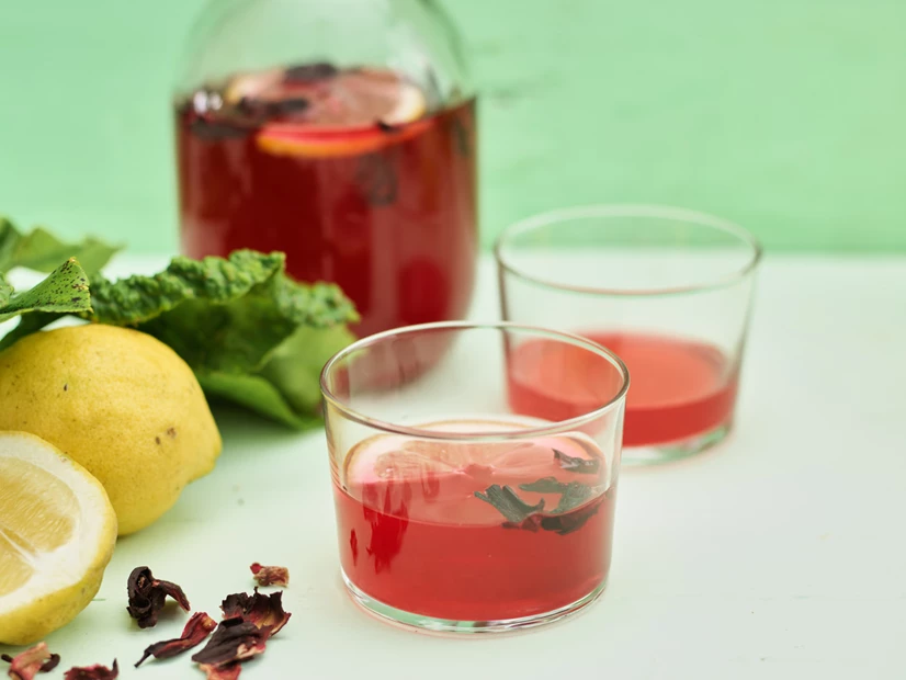 Refresque-se com esta Limonada, aromatizada pelo perfumado Hibisco.
