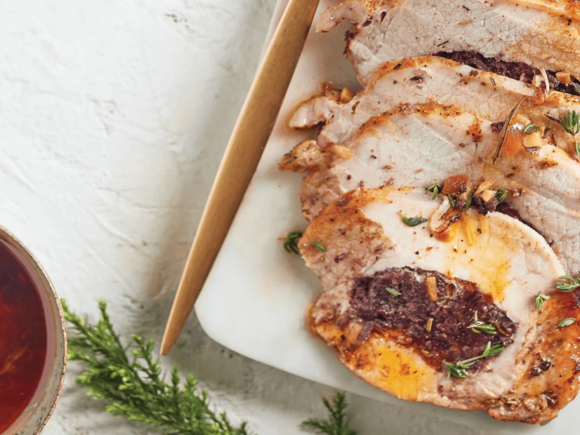 Recheie o lombo com a pasta e sele com cordel a toda a volta.