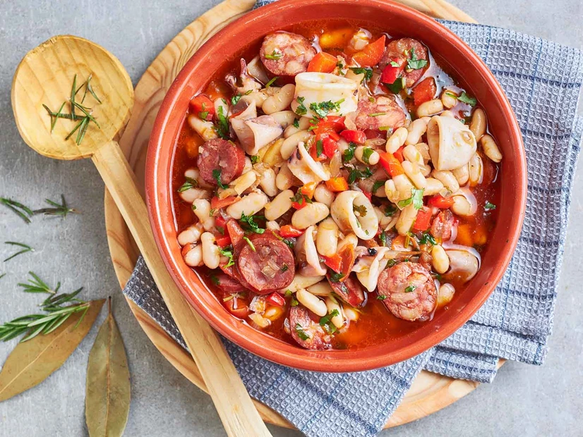 Gaste pouco e coma bem, com esta receita Low-cost de Lulas com Feijão-Branco.