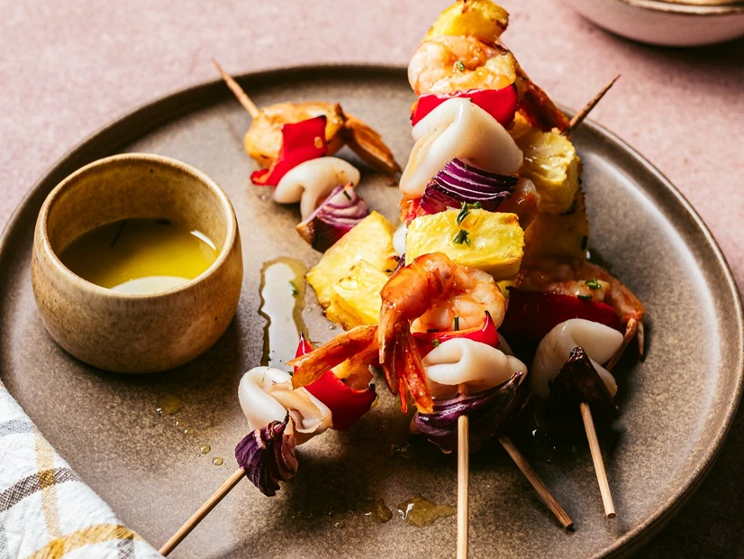 Ver tudo em animaisCorte as lulas em pedaços e coloque-os numa taça. Tempere-os com sal, o sumo de limão, as ervas da Provença e o alho em pó e misture tudo muito bem. Deixe marinar por cerca de 10 minutos.