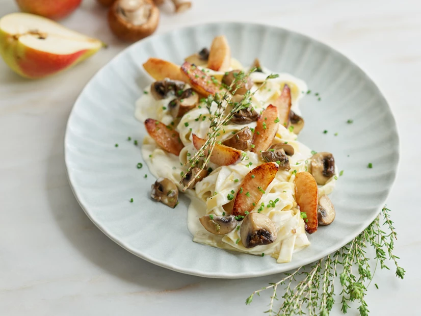 • Junte os cogumelos e as peras.