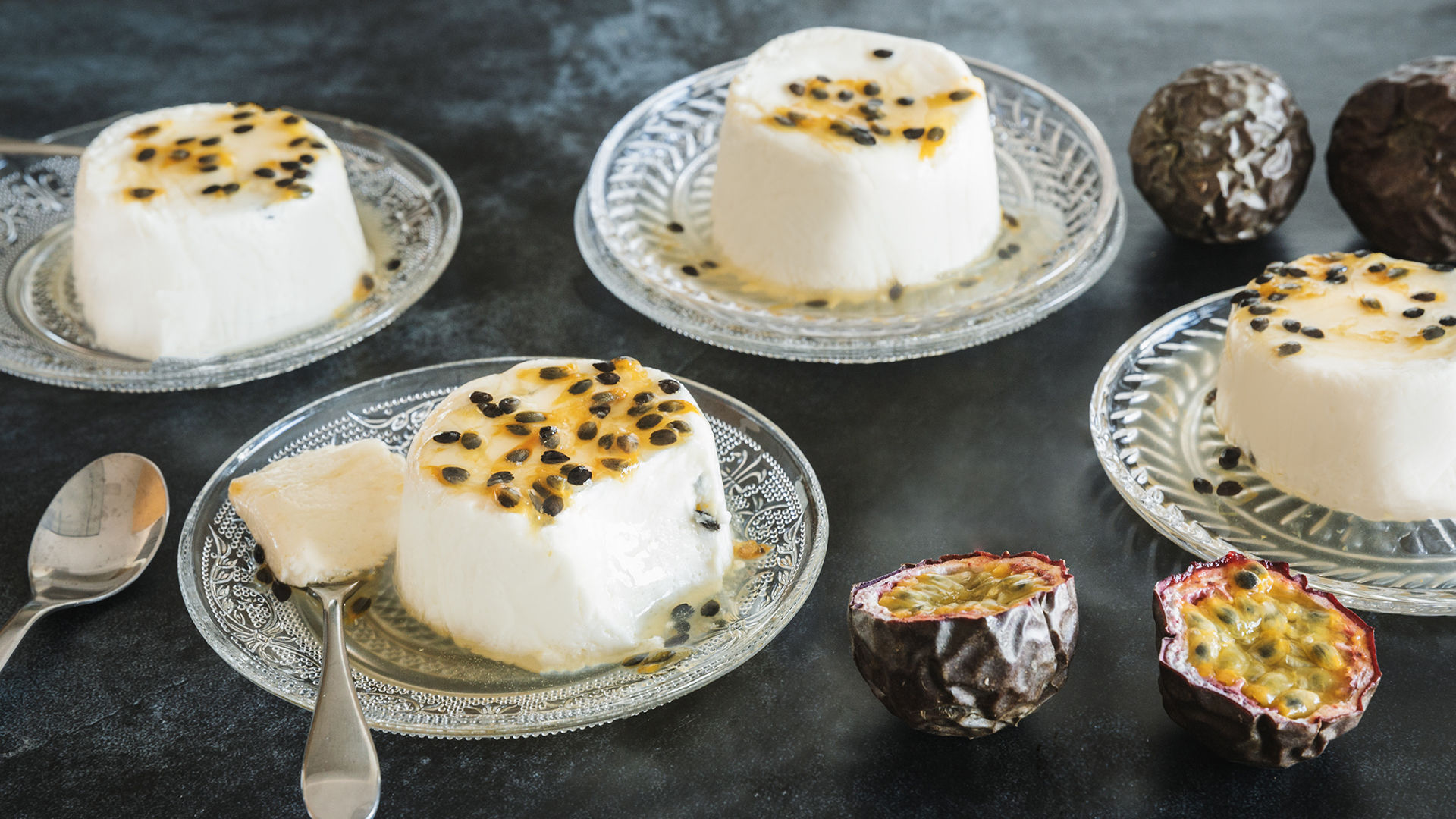 Sirva a mousse de melão com cubinhos de melão e folhas de hortelã.
