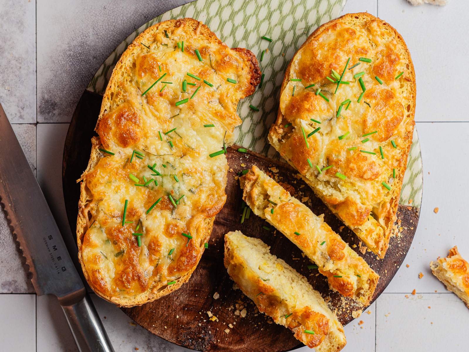 Enrole o pão em papel de alumínio e leve ao forno a 180ºC por 20 minutos ou até o queijo derreter completamente.