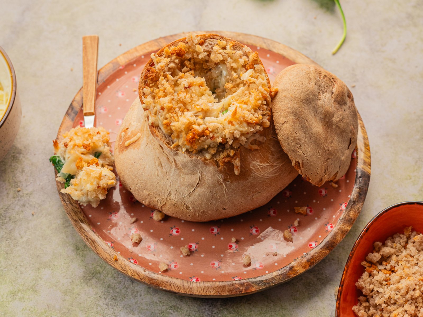 Abra os pastéis numa das laterais e recheie com queijo da serra. Sirva polvilhado com salsa e pimenta preta.