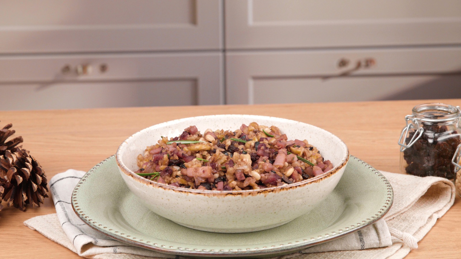 Sirva a perna de peru com as batatas e os grelos e decore o peru com orégãos frescos.
