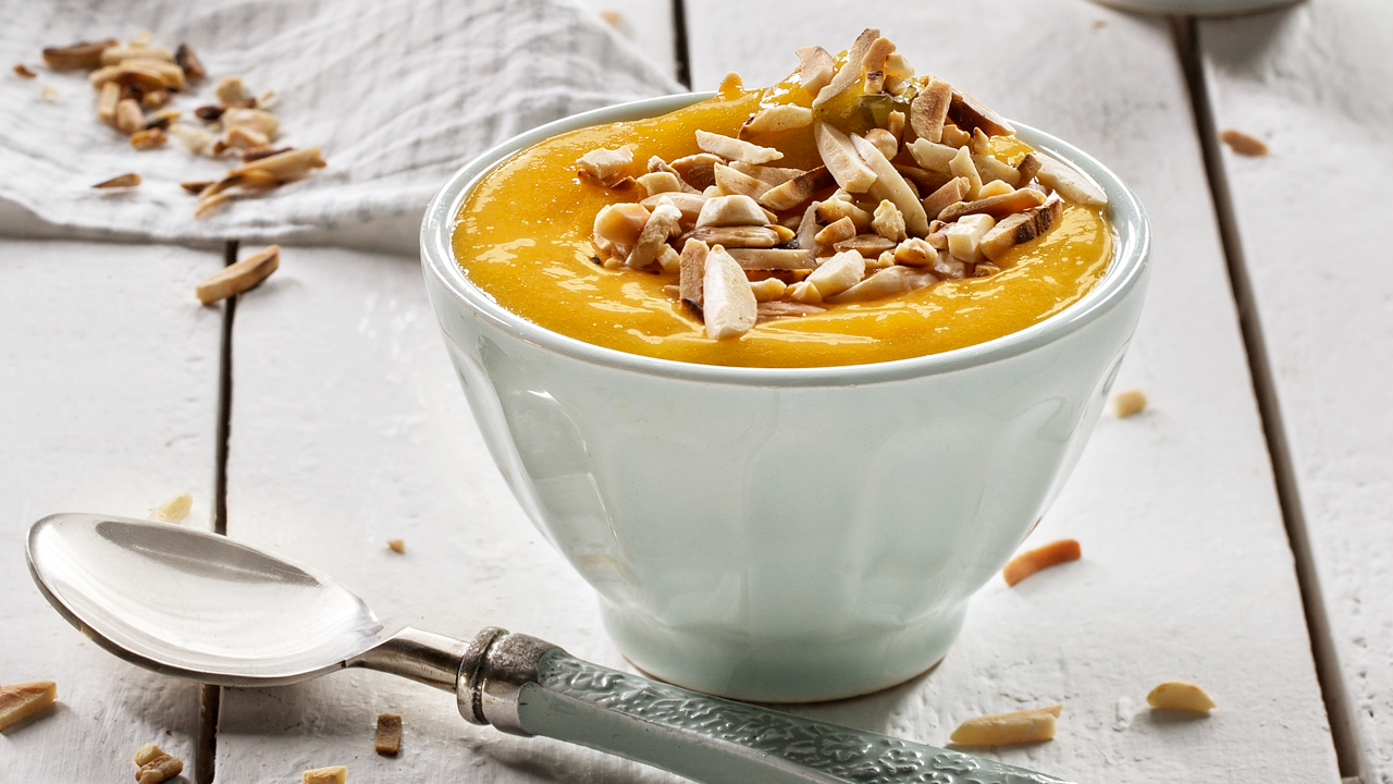 Ver tudo em animaisPara preparar o pudim flan, ferva a bebida vegetal de aveia com uma casca de limão. Deixe arrefecer até ficar morno.