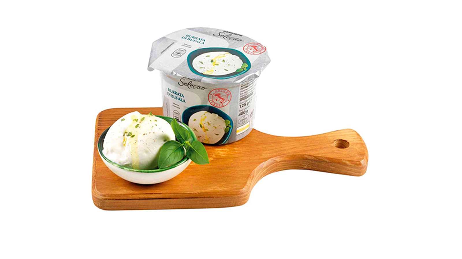 O queijo Mozzarella di Bufala provém da região da Campânia, no sul da Itália, e é um queijo de textura macia e sabor suave. Ao contrário do mozzarella tradicional, é produzido exclusivamente a partir de leite de búfala, o que lhe concede um sabor mais rico e complexo.