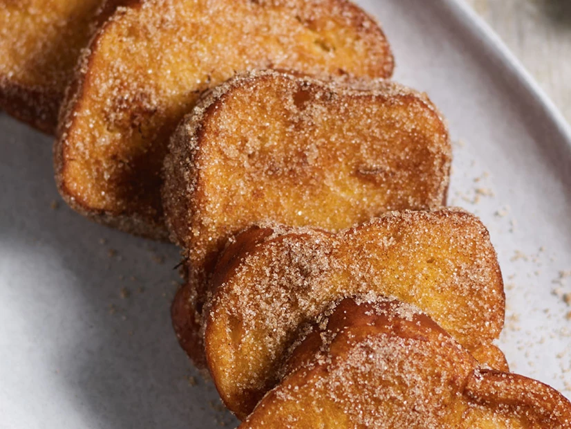 Numa travessa, misture bem o açúcar com a canela.