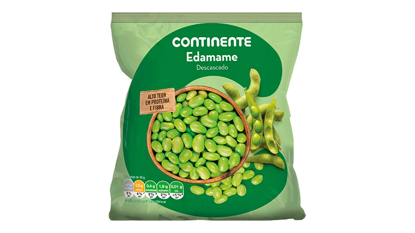 Por outro lado, também encontra opções de legumes na seção de congelados, como este edamame descascado. Um acompanhamento com alto teor em proteína e fibra, pronto a consumir e que é perfeito para incluir em pokes e saladas.
