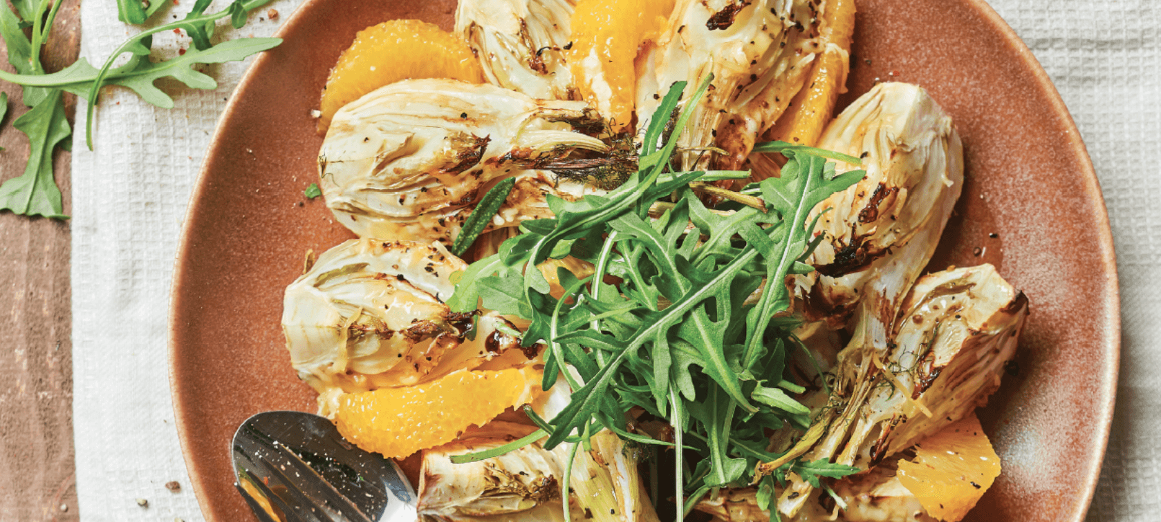 Disponha-a num tabuleiro com papel vegetal, tempere com sal, pimenta e um fio de azeite. Leve ao forno pré-aquecido a 180ºC por 35 a 45 minutos até dourar.