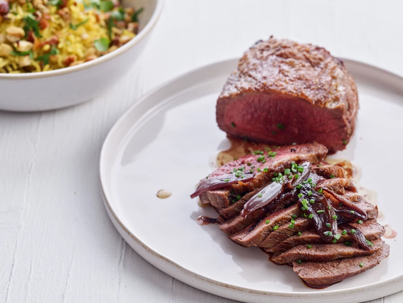 • Retire a carne do forno, retire a folha de alumínio e regue-a com o molho de chalotas e vinho do Porto.