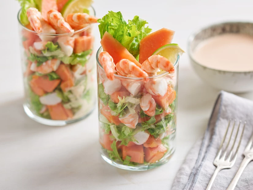 • Num copo coloque alface, por cima papaia, depois camarão e por fim molho.