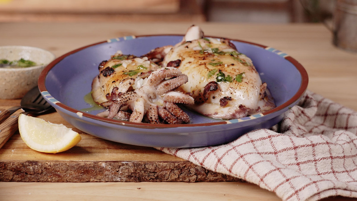 Tempere os chocos com sal e pimenta e grelhe-os, preferencialmente no carvão, até ficarem tostados, mas sem queimar.