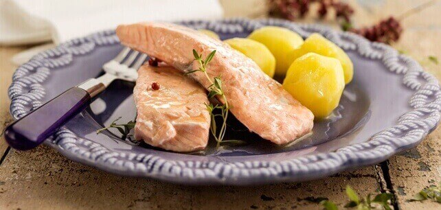 Quando estiver translúcida, junte os lombos de salmão e deixe cozinhar. Vá virando os lombos até dourar bem de cada lado.