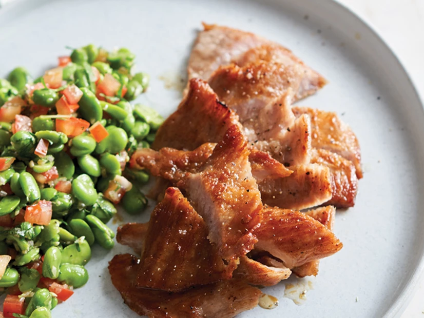 Sirva os secretos de porco ibérico com a saladinha.