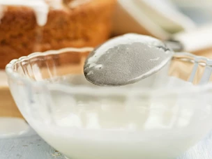 Coloque num tabuleiro a bebida vegetal e a aveia e misture bem.