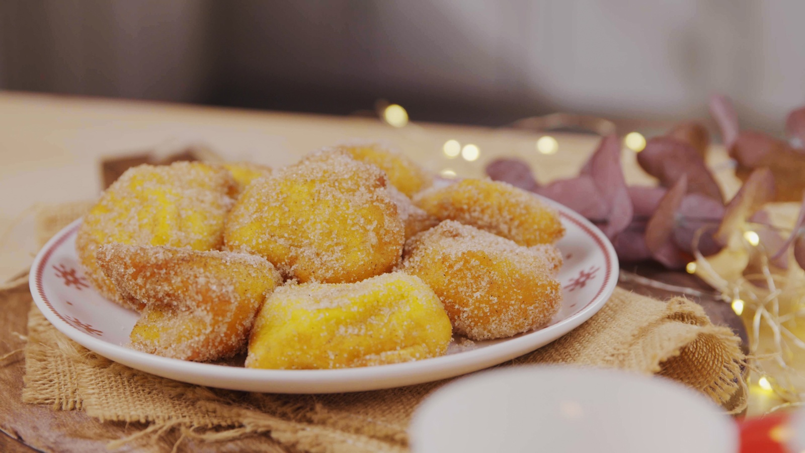 Fritar porções de massa em óleo abundante, bem quente, até ficarem douradas.