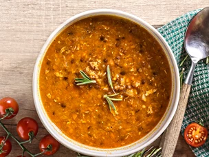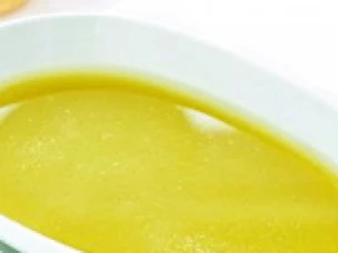 Num tacho aqueça o azeite e a cebola ou alho francês picado para refogar, juntamente com o louro e o alho.