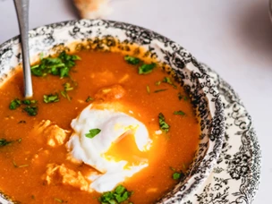 Tempere com sal e pimenta. Coloque o ovo e tape até escalfar. Coloque o pão no prato e regue com o preparado.