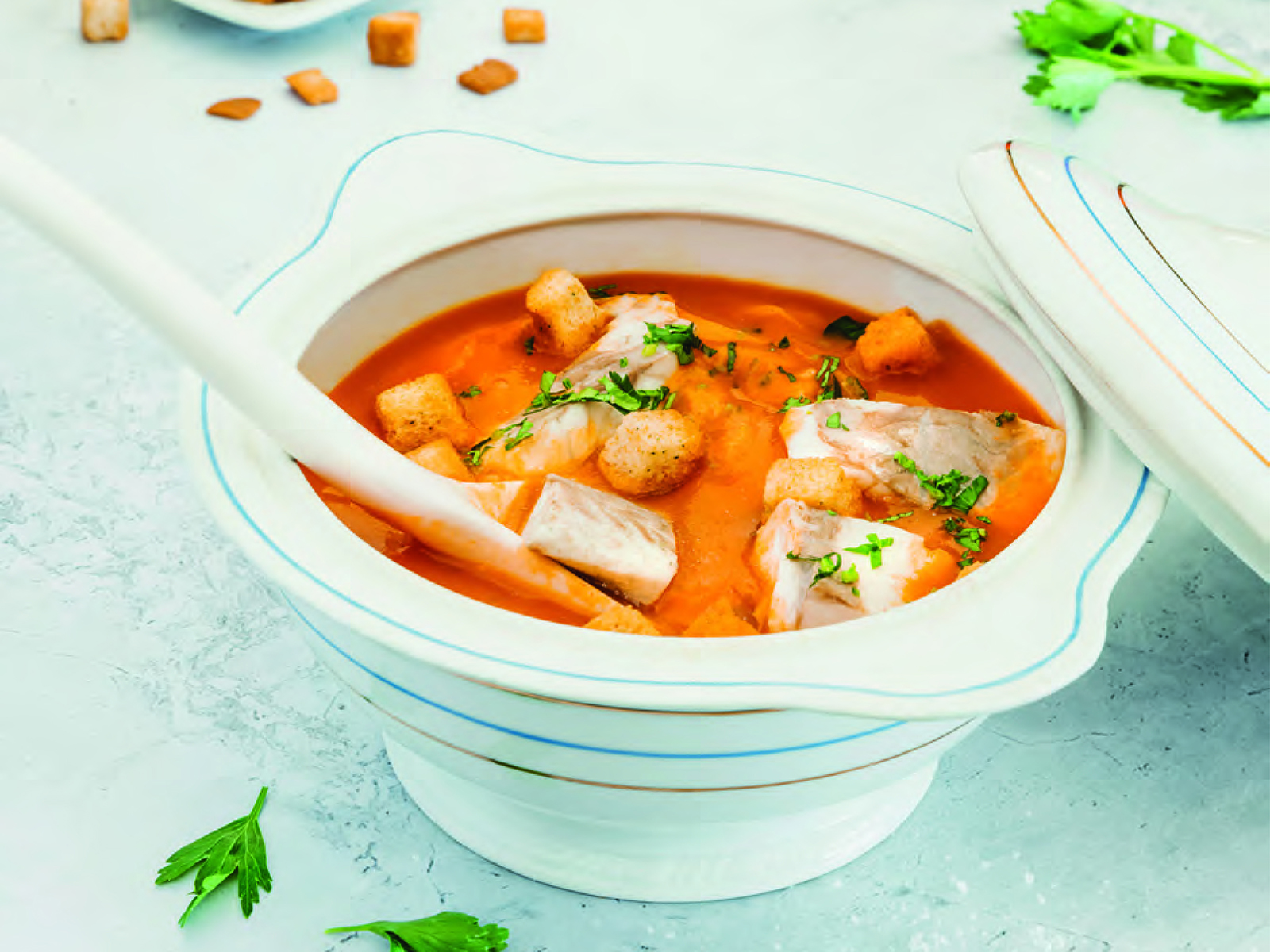 Triture a sopa num copo de sumos e adicione água, se gostar de uma consistência mais líquida.