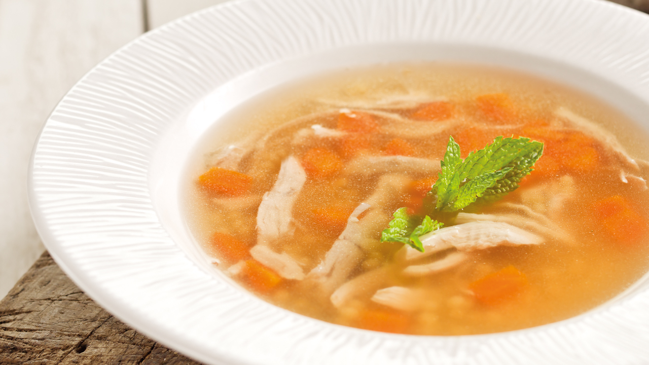 Decore a sopa de cebola com pimenta e cebolinho picado.