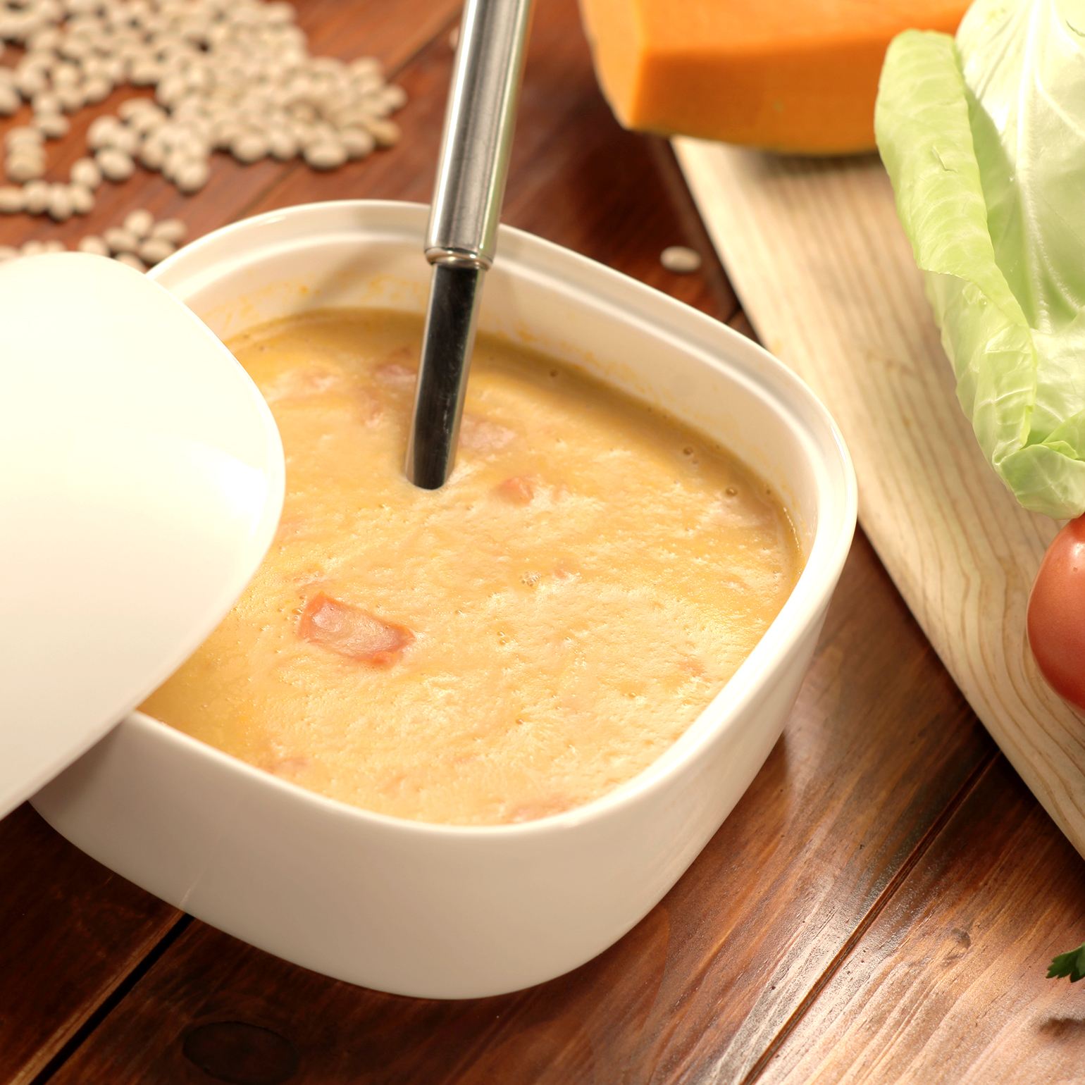 Quando os legumes estiverem cozidos triture a sopa e deixe em lume brando. Nesta altura deve retificar os temperos e adicionar mais água se achar necessário.