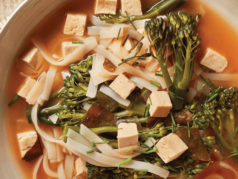 Uns 3 minutos antes de terminar de cozinhar, junte os noodles e o tofu e mexa bem.