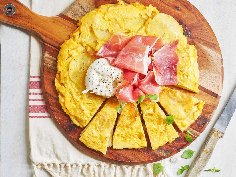 Experimente esta versão gourmet de Tortilha de Batata com Presunto e Burrata, uma explosão de sabores que vai encantar o seu paladar. A combinação crocante das batatas, o salgado do presunto e a cremosidade da burrata resulta numa experiência gastronómica única. Prepare-se para impressionar os seus convidados com este prato simples, mas requintado, perfeito para um almoço, jantar ou lanche.