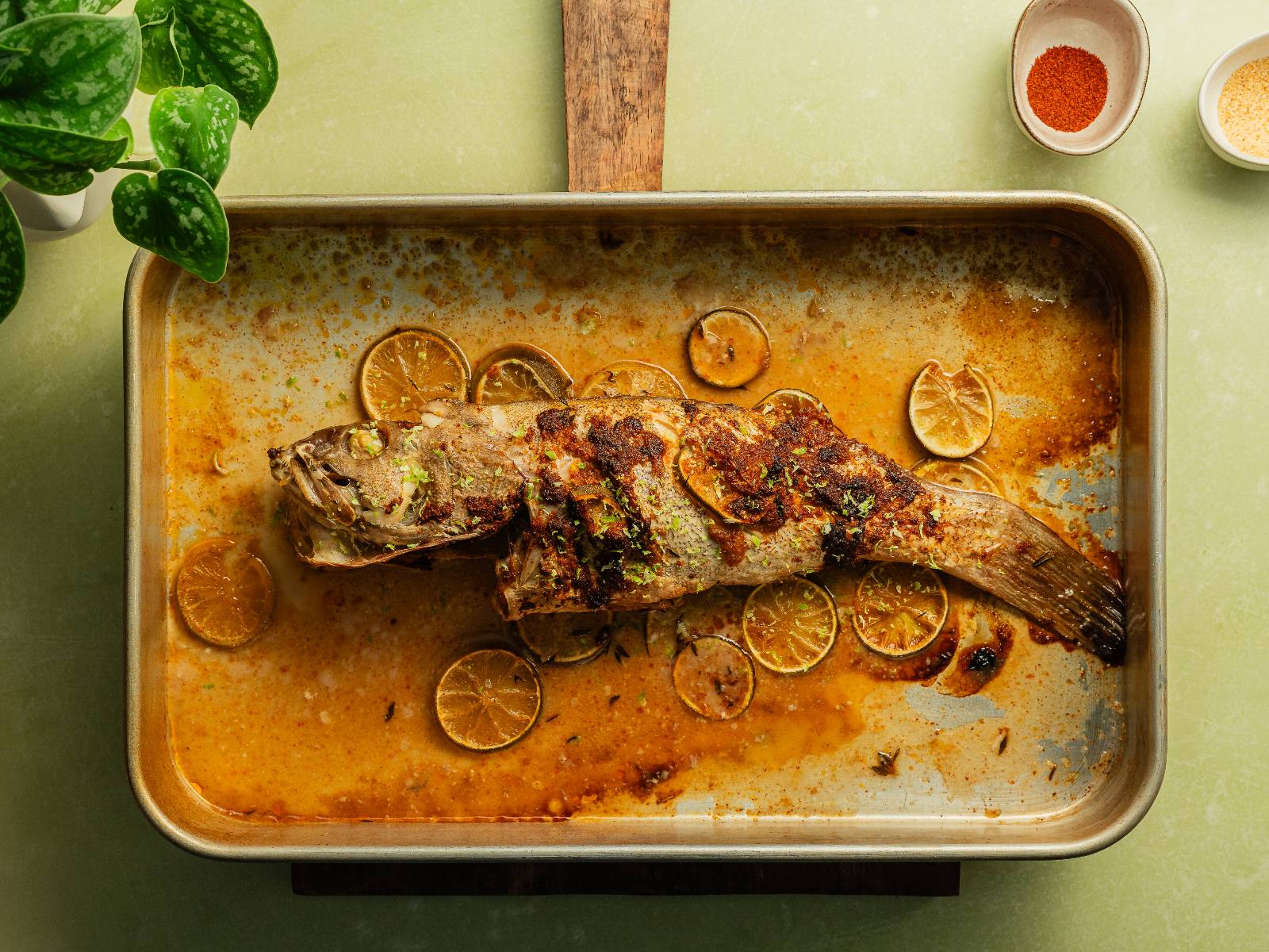 Deixe arrefecer e retire a pele e as espinhas. Desfie grosseiramente.