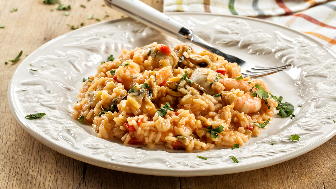 Junte o arroz, a água, piripíri a gosto e, se necessário, retifique o sal. Programe 16 minutos, a 100 °C, com Rotação Inversa na velocidade 1.