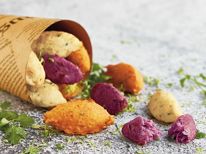 Com a ajuda de 2 colheres, molde bolinhos de bacalhau e coloque num tabuleiro forrado com papel vegetal e pincelado com o azeite.