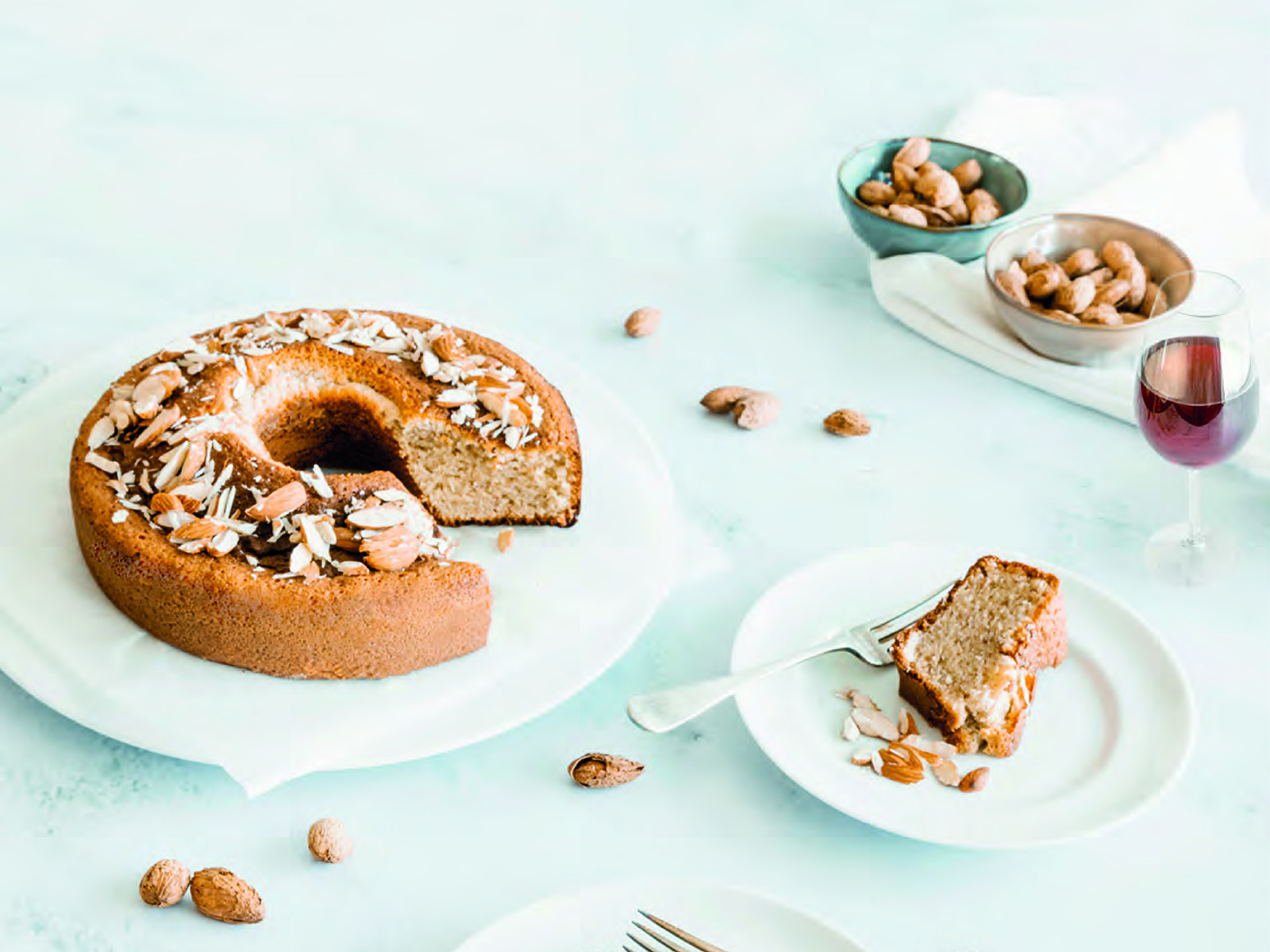 Retire do forno, deixe arrefecer um pouco e desenforme. Decore com amêndoa em palitos tostada.