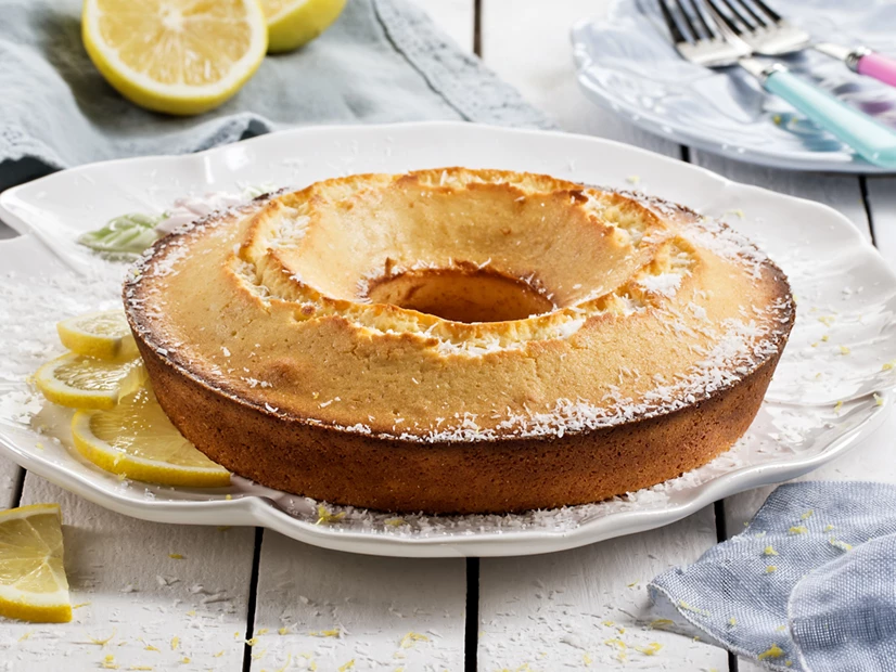 Desenforme e deixe arrefecer. Decore o bolo com açúcar em pó ou côco ralado.