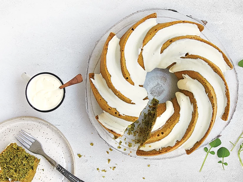 Retire o bolo do forno e deixe arrefecer completamente numa grelha. Cubra com o iogurte bem frio e sirva.