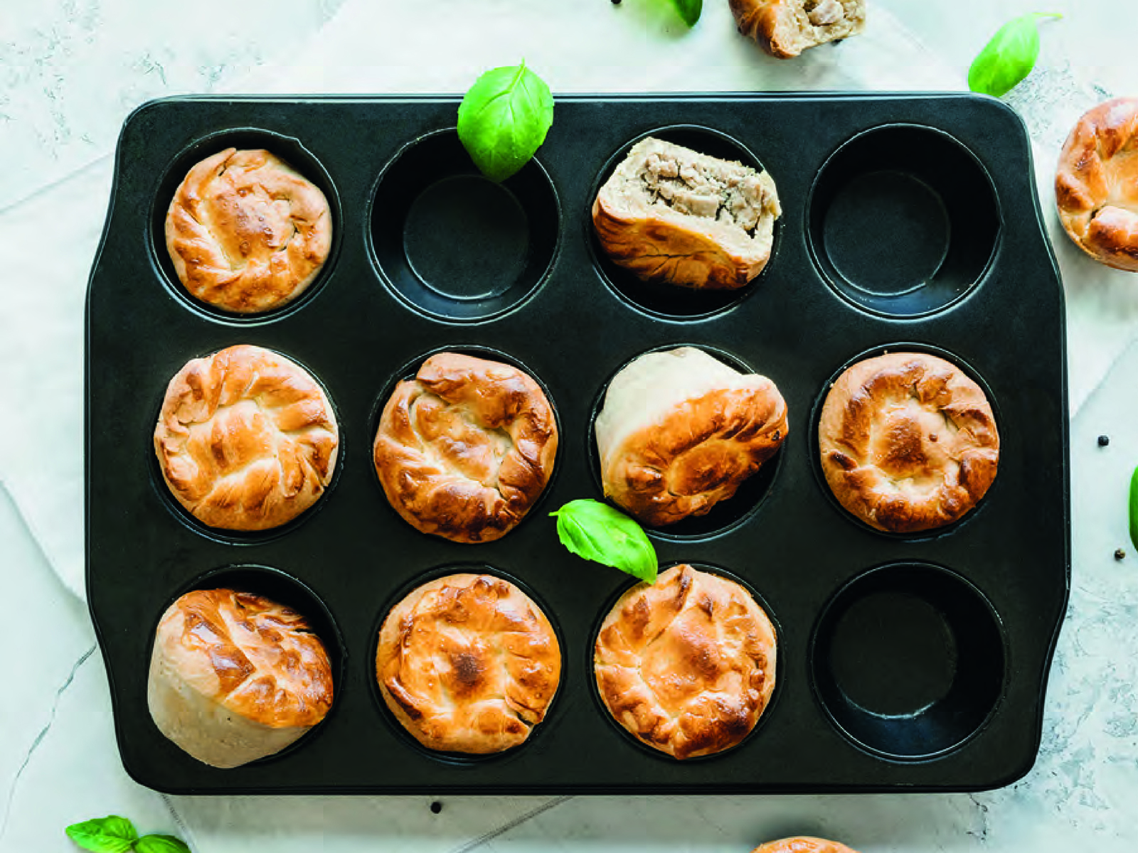 Faça o recheio: na panela limpa e seca, coloque a cebola aos pedaços, os dentes de alho, o azeite e o bacon e pressione 1‑2 vezes a Função Triturar , fazendo descer com a espátula o que ficou acumulado na panela depois de cada ciclo de trituração. De seguida, refogue 8 minutos, a 120ºC, na velocidade 2.