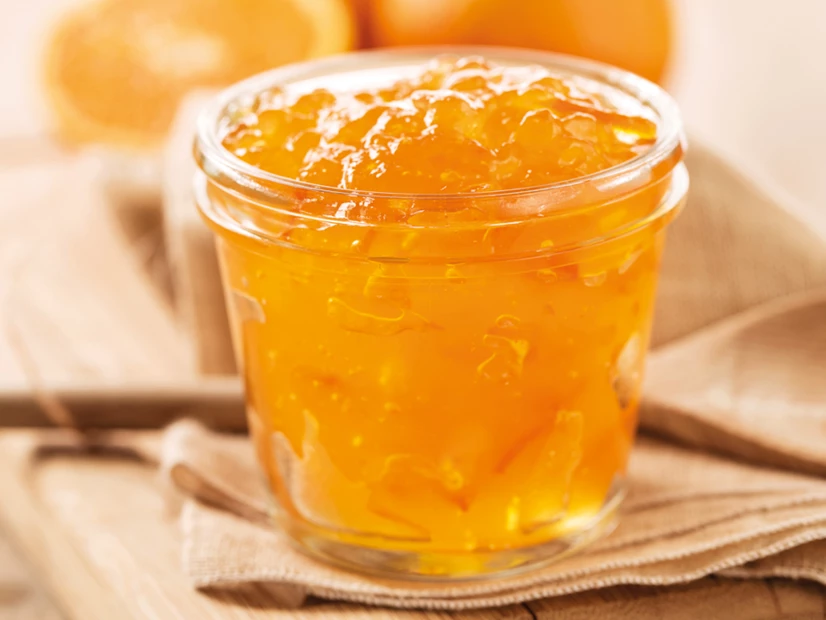 Descasque 3 laranjas, corte-as em fatias finas e retire as pevides. Coloque no copo.