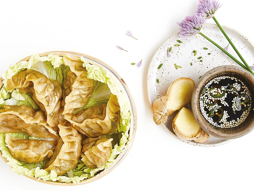 Sirva com molho de soja e sementes de sésamo ou com o molho que sobrou do recheio. Acompanhe com uma salada crocante ou sobre folhas de couve chinesa ao vapor.