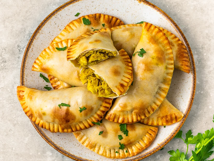 Numa superfície limpa e polvilhada com farinha, estenda a massa e faça círculos com 10 cm de diâmetro, recheie e dobre. Com um garfo pressione à volta para fechar a empanada.