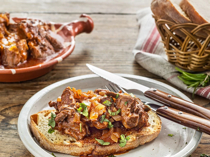 Adicione o borrego e a marinada, a folha de louro, os cravinhos, o caldo de carne e a água e programe 40 minutos a 100ºC na Velocidade 1 com a Função Inversa.