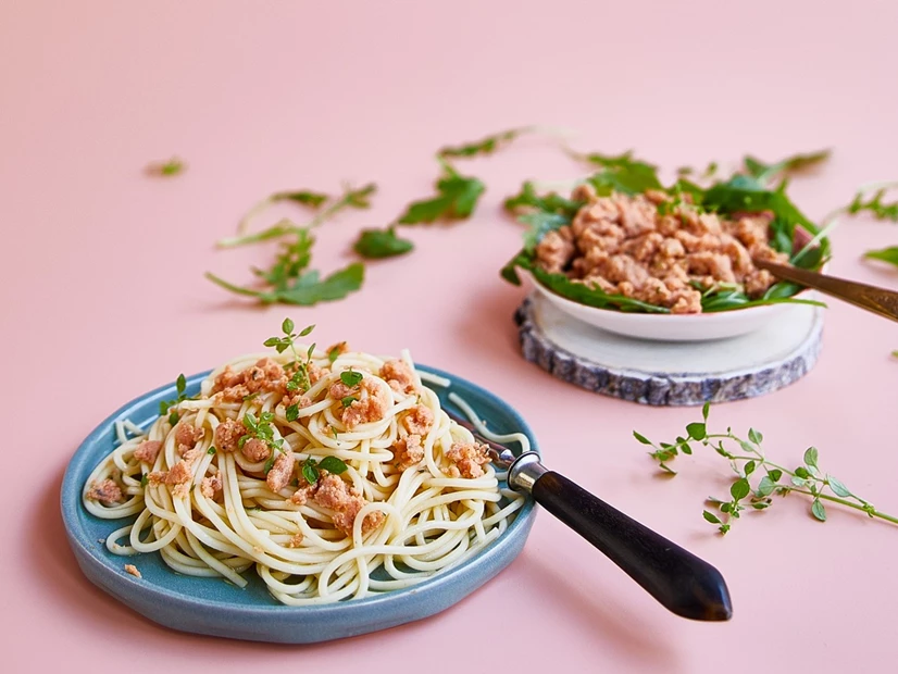 Escorra o esparguete (com a ajuda do cesto), reserve-o no cesto e passe por água fria para que não cole.