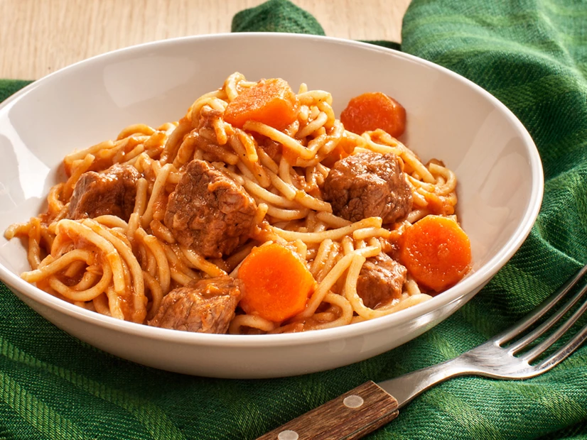 Adicione a carne, a cenoura cortada às rodelas, o caldo de carne, a polpa de tomate, o vinho, sal e pimenta a gosto e a folha de louro e programe 7 minutos, a 100 °C, Rotação Inversa na velocidade 2.