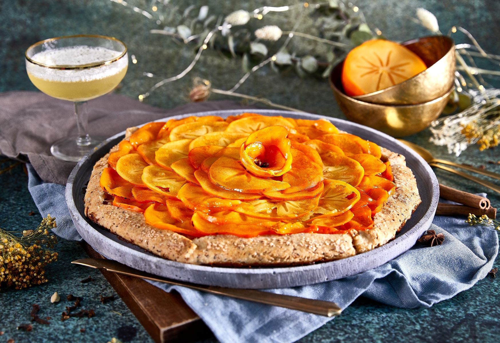 Uma sobremesa rústica que combina a doçura suave dos dióspiros com a textura da massa integral. Perfeita para servir morna, simples ou acompanhada por uma bola de gelado, ideal para momentos especiais ou para terminar a refeição com algo reconfortante.