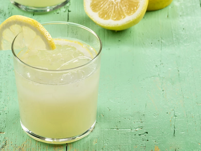 Coloque no copo a água, os limões (com casca) cortados em quartos e o açúcar.