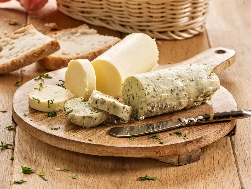 Disponha a manteiga sobre papel absorvente e seque-a bem. Envolva-a em película aderente, dando-lhe a forma desejada, e leve ao frigorífico.